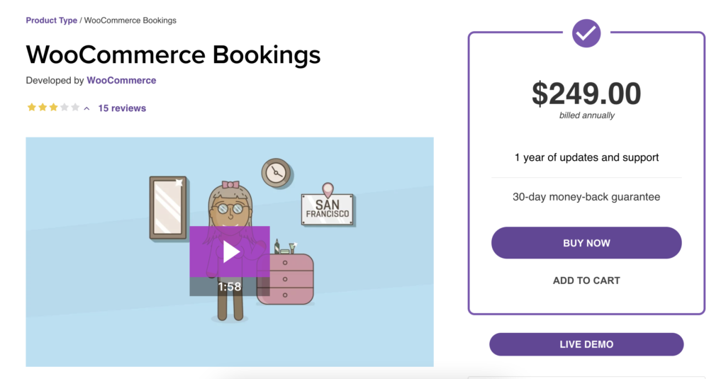 WooCommerce Bookings is the WooCommerce plugin to set up a reservation system, make appointments, or process rentals since it allows you to include a calendar or schedule in your products.