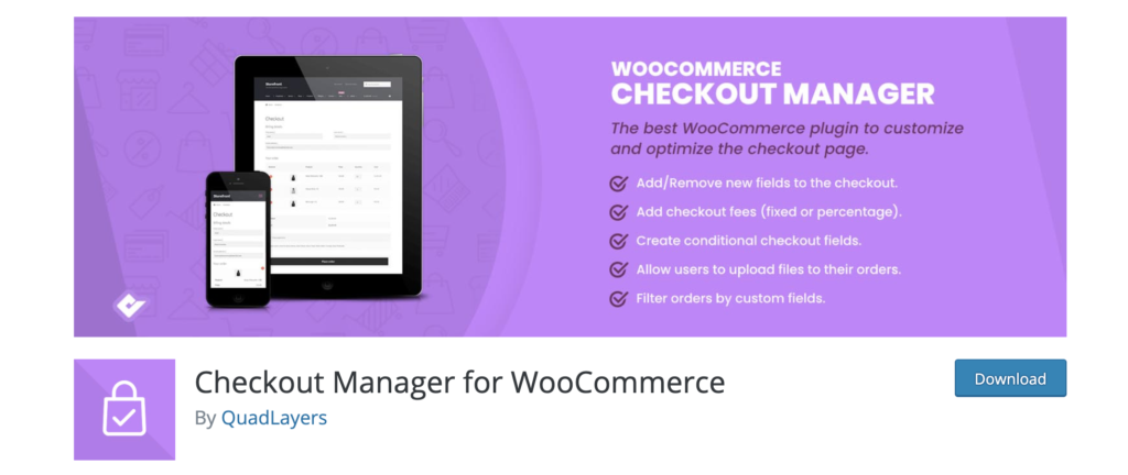 Checkout Manager for WooCommerce is a plugin with which you can customize the “finalize purchase” or “order” page in your online store since it allows you to add new fields, reorder existing ones and hide or expand the payment fields in the sections of billing, shipping, and extras.