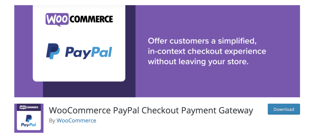 WooCommerce PayPal Checkout Gateway is the official plugin to integrate PayPal as a payment gateway in WooCommerce.