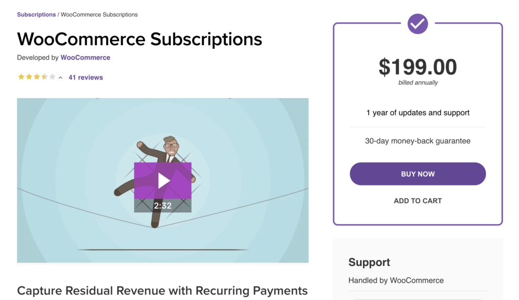 WooCommerce Subscriptions is the official WooCommerce extension for creating subscription sites. Websites where you can offer various payment plans (for example, weekly, monthly, and yearly) in exchange for exclusive content.