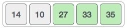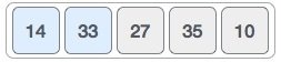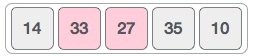 আমাদের নেওয়া অ্যারেতে শুরুতেই আছে ১৪ এবং ৩৩। যেহেতু ৩৩, ১৪ থেকে বড় তাই এখানে আগে থেকেই সর্টেড আছে, অর্থাৎ কোন পরিবর্তন হবে না। এখন আমাদেরকে ৩৩ এবং ২৭ এর মধ্যে তুলনা করে দকেহতে হবে কে বড়, আর কে ছোট।
