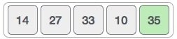 এখন বাবল সর্টের নিয়ম অনুযায়ী ভ্যালু দুটির অবস্থান অদলবদল করতে হবে, মানে ১০ কে নিয়ে আসতে হবে ৩৫ এর স্থানে। এভাবে আমাদের প্রথম ধাপ শেষ করার পর অ্যারে দেখতে হবে অনেকটা নিচের মতঃ