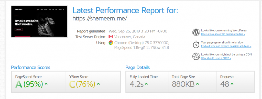You can see one of my website loading speed which hosted on dedicated hosting bellow. It has been build on wordPress.