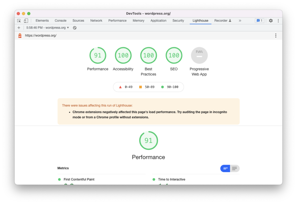 If you’re familiar with Google’s PageSpeed Insights tool, You may have also used the Lighthouse tool, which is a similar tool that provides performance metrics for your website.