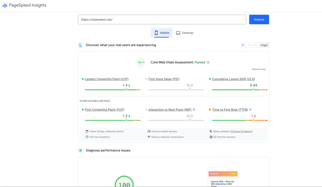 PageSpeed Insights is the best option if you’re interested in analyzing your site’s performance/load times.