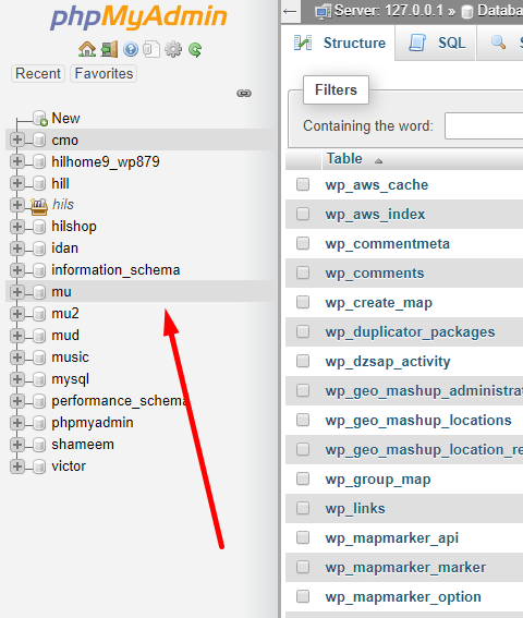 FIRST STEP: First open your database by clicking on it from the left side database list menu.