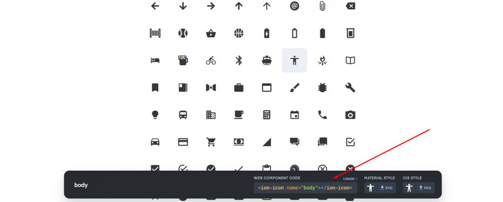 Next, if you want to use any of your icons, you need to enter the Ionicons library and select one.