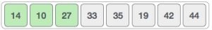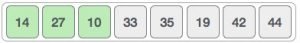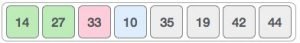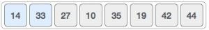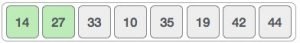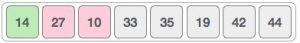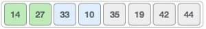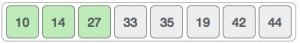 যেহেতু ১৪ এবং ২৭ সর্টেড, আমাদের পরের দুইটা এলিমেন্ট কম্পেয়ার করতে হবে, এক্ষেত্রে ৩৩ আর ১০।