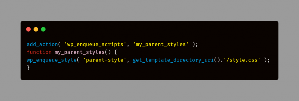 The next step is to load the styles of the main theme. This can be done with “enquue” for the style sheet of the parent theme. Don’t worry too much about this. You can copy and paste the following code into your child theme in the functions.php file. Note that this loads the styles of the parent theme.