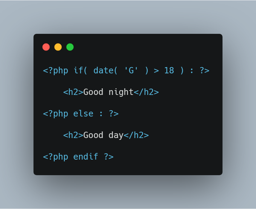 Without any knowledge of PHP code, we can get some information about this. Just by looking at it, one can interpret that in a particular set of circumstances it will show “good night”, and in others it will show “Good Morning”.