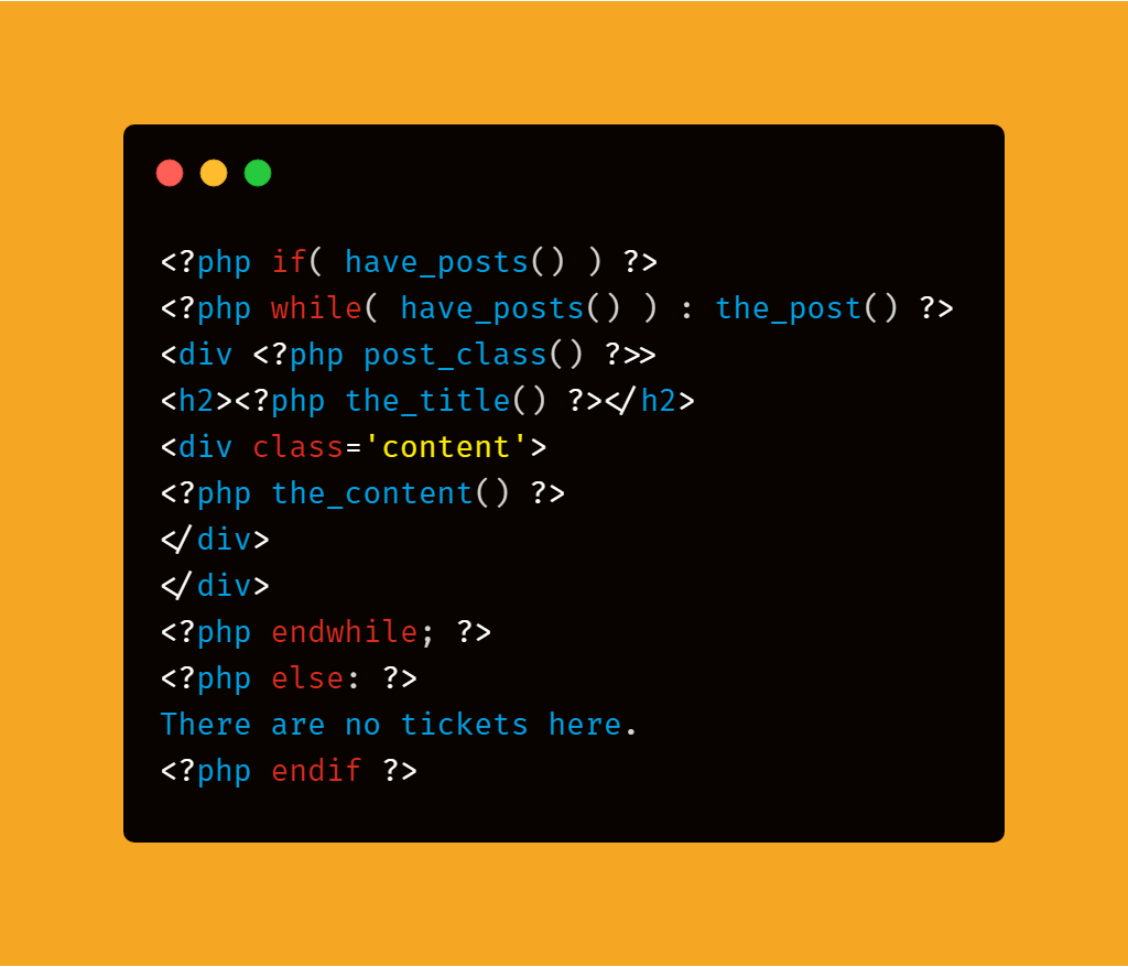 Everything inside our while loop runs while the value of this function is true. This is exactly what we need. As soon as we have shown the last post, the value of have_posts() will be false so the loop ends.