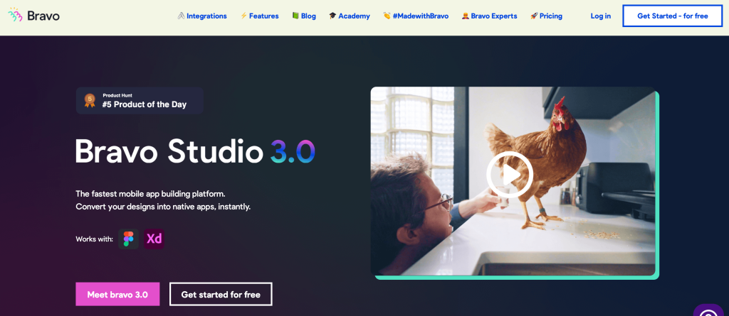 Bravo Studio is not a website creator but a mobile application. Its philosophy: design first, code never.
