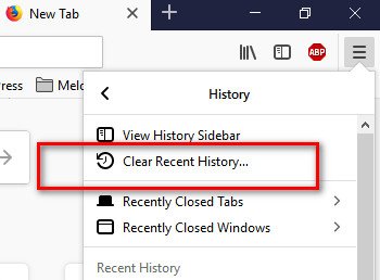 Once you click on History button, another tab will open where you will see something like: Clear recent History. Bingo, this is the option we are looking for to delete browsing history in Firefox.