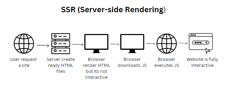 One of the main advantages of SSR is improved performance. When a client-side JavaScript application is loaded in the browser, the browser must first download and execute the JavaScript code before the page can be rendered. This can take significant time, especially on slower internet connections or older devices. With SSR, the server has already rendered the page before it is sent to the browser, so the page is ready to be displayed as soon as it is received.