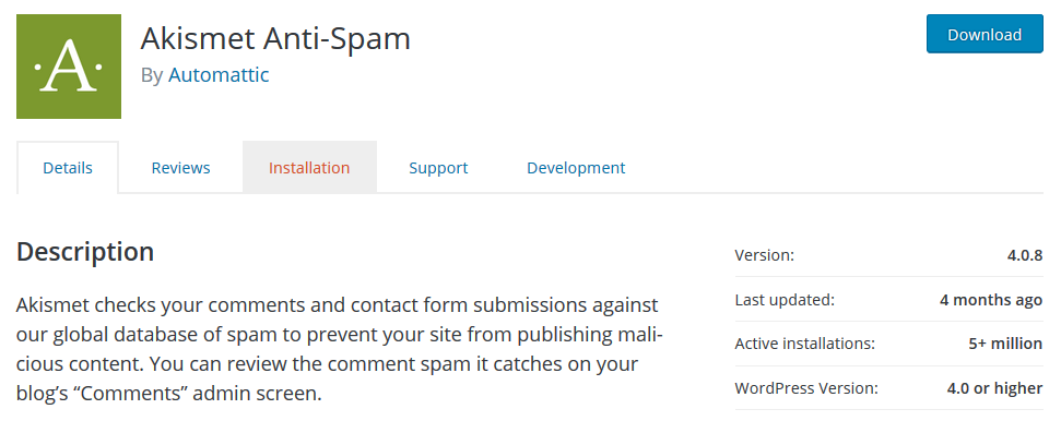 Its not so hard to install and activate Akismet plugin. But to use it full features, you will need an Akismet.com API key. Dont worry, they had Free personal use package with others premium package. Here is the awesome easy step to enable Akismet: