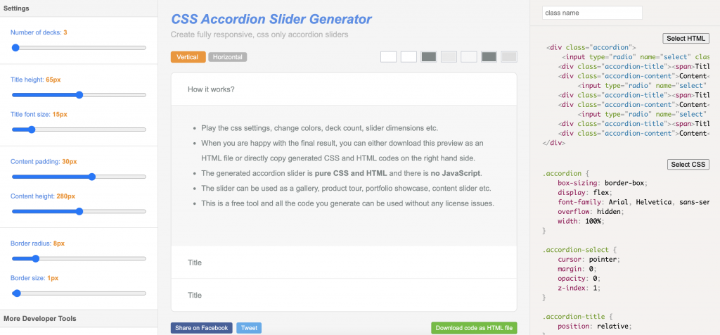 As the name suggests, CSS Accordion Slider Generator allows you to create accordion menus. Accordion Slider will enable you to create a menu containing up to 10 entries.